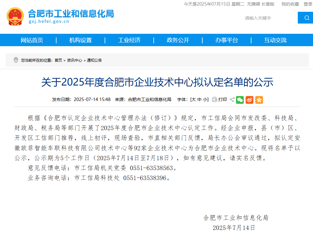 近日,依據(jù)《合肥市認(rèn)定企業(yè)技術(shù)中心管理辦法(修訂)》相關(guān)規(guī)定,合肥市工業(yè)和信息化局聯(lián)合市發(fā)展和改革委員會(huì)、科學(xué)技術(shù)局、財(cái)政局、稅務(wù)局等部門(mén)組織開(kāi)展了 2025